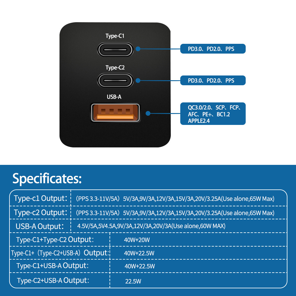 Port:1qc3.0 Port 2 Type-C Port