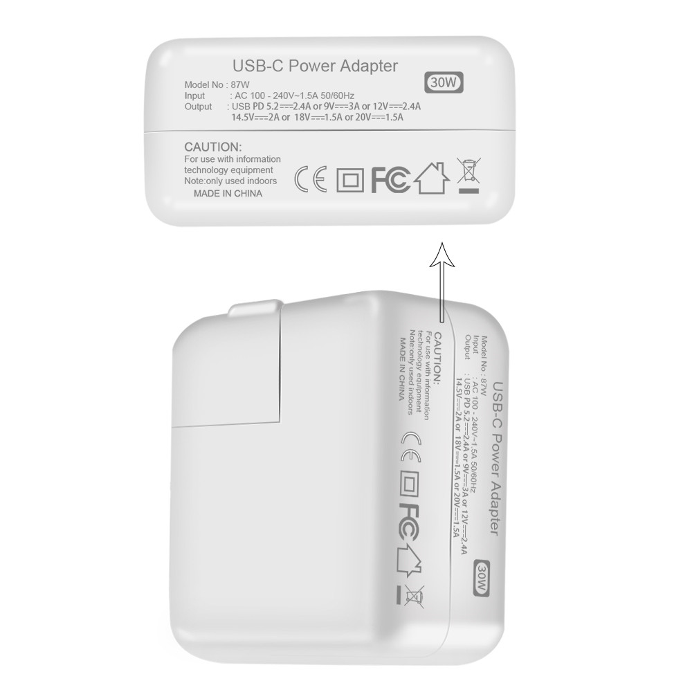 Packaging:each 30W USB C PD Charger into white color box, then with 1m type c cable into brown box,50pcs in one carton